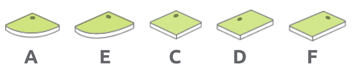 „F” – téglalap, lefolyó a rövid oldalon középen