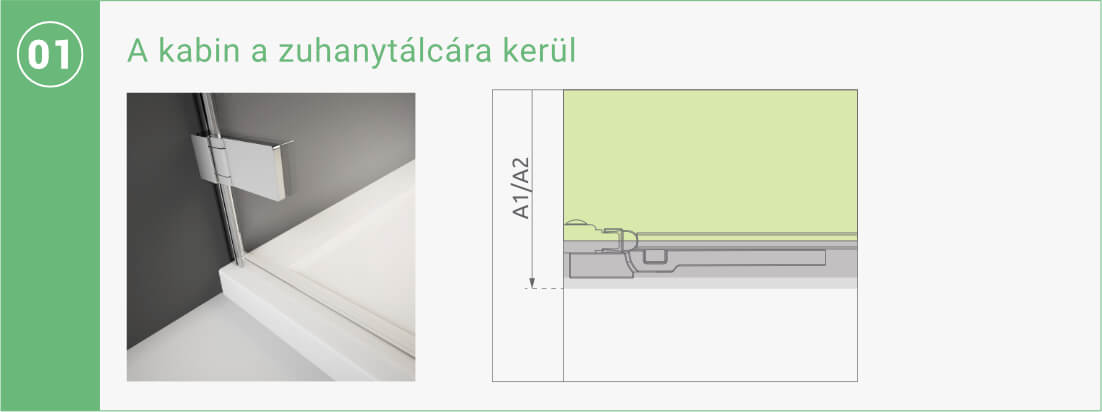 Ilyenkor a tényleges, katalógusban megadott méret mellett figyelembe kell venni a belső saroktól mérve a burkolt fal és a kabin külső széle közötti távolságot. (X1 és X2). A kabin mérete kisebb, mint a zuhanytálca mérete és függ a fal függőlegességétől is. A konkrét értéket a technikai rajzon X1 és X2 jelöléssel látod.